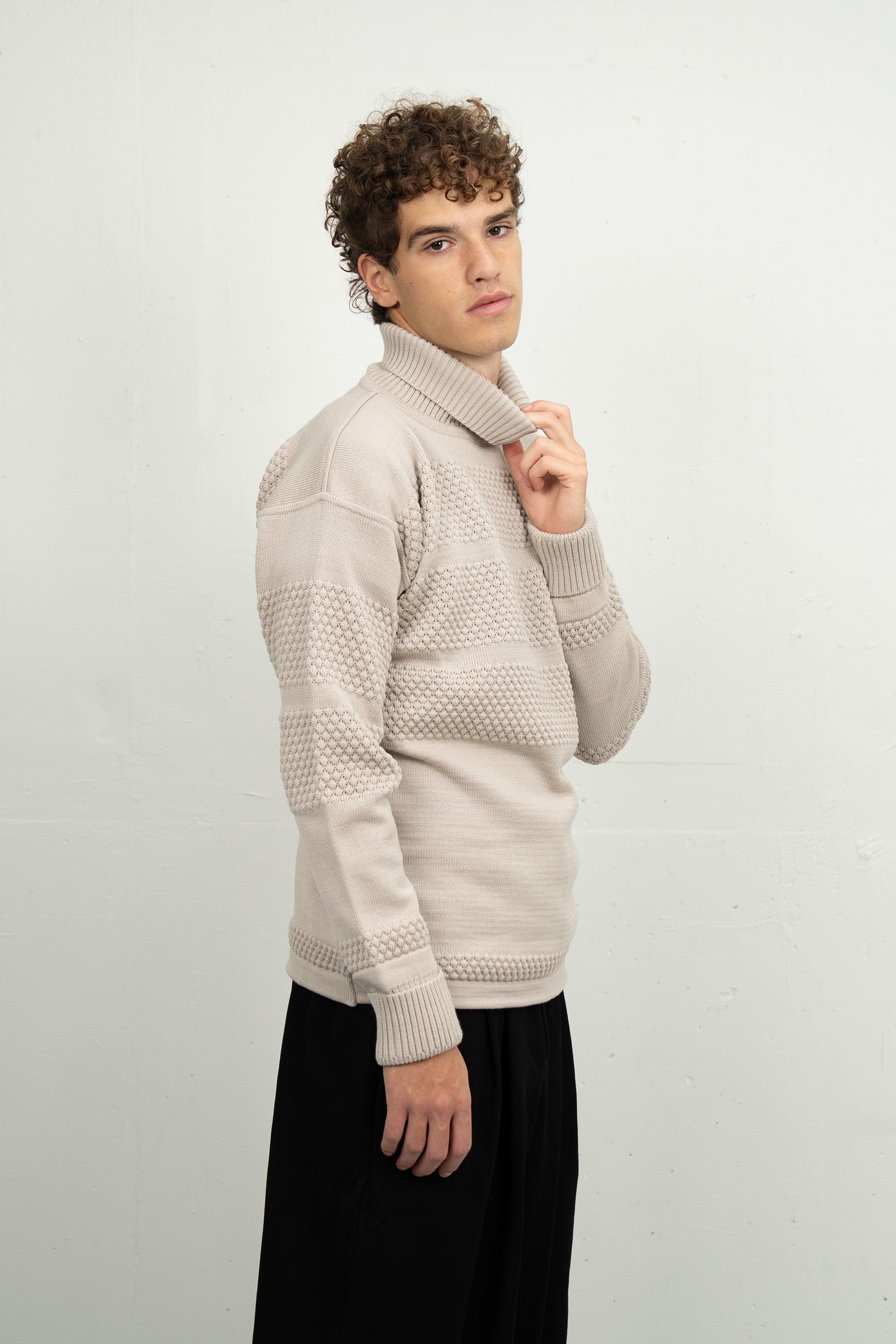 FISHERMAN sweater | høj hals, stone white