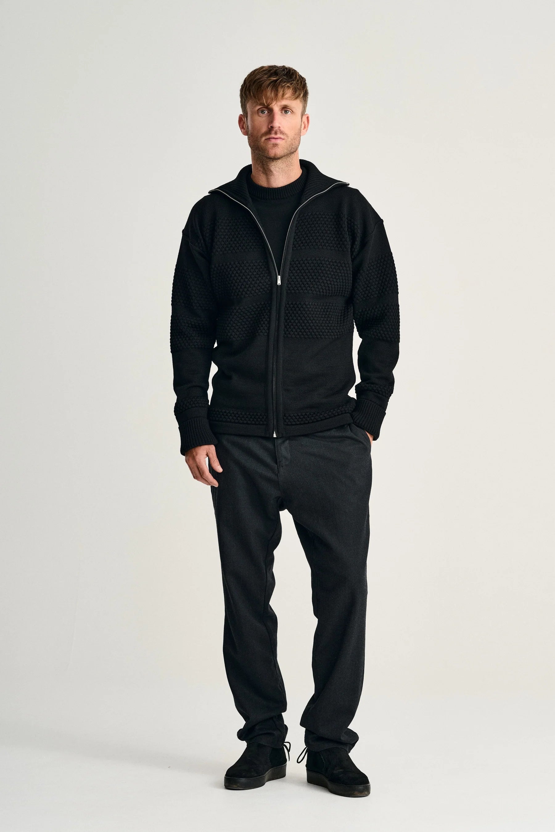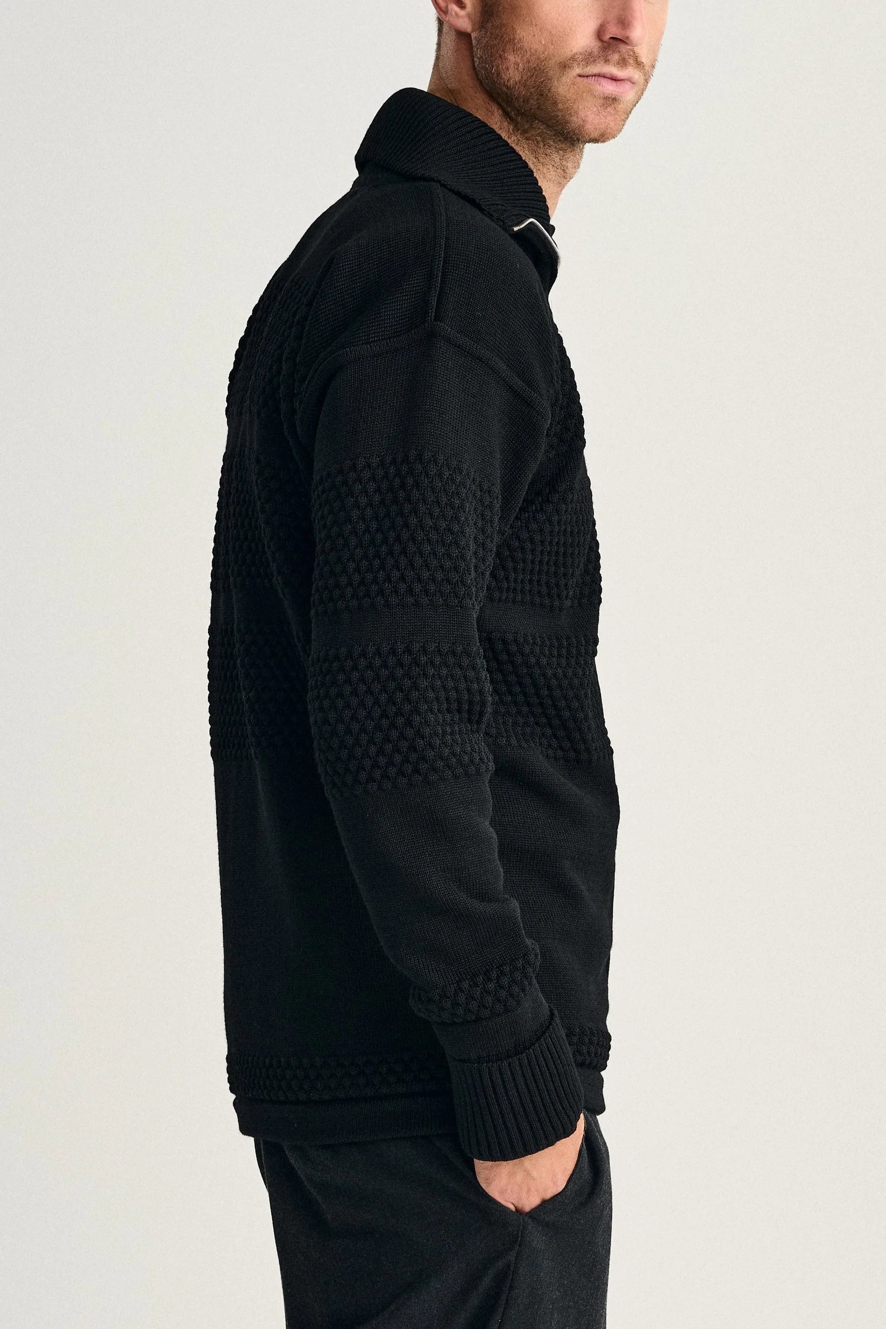 DESIGN | Original Danish Fisherman full zip. Angled sleeves with signature bubbles. Classic durability and appeal. Full-length zipper turns it into a jacket-like piece. |