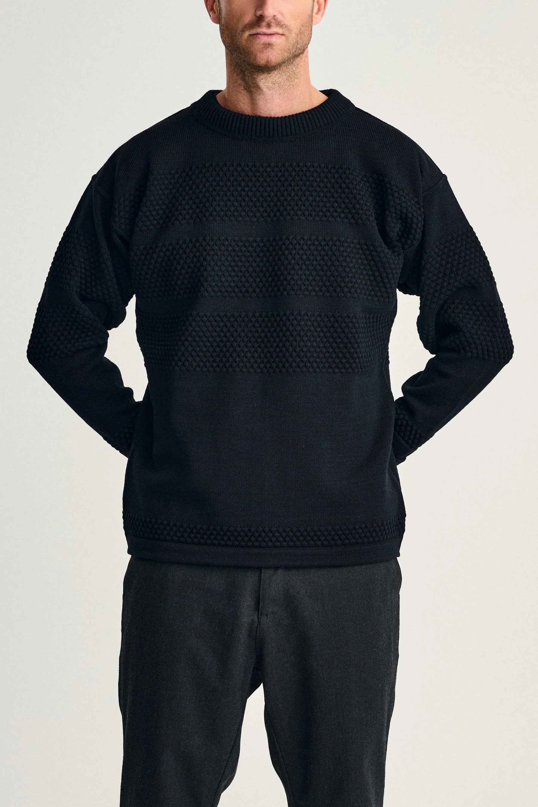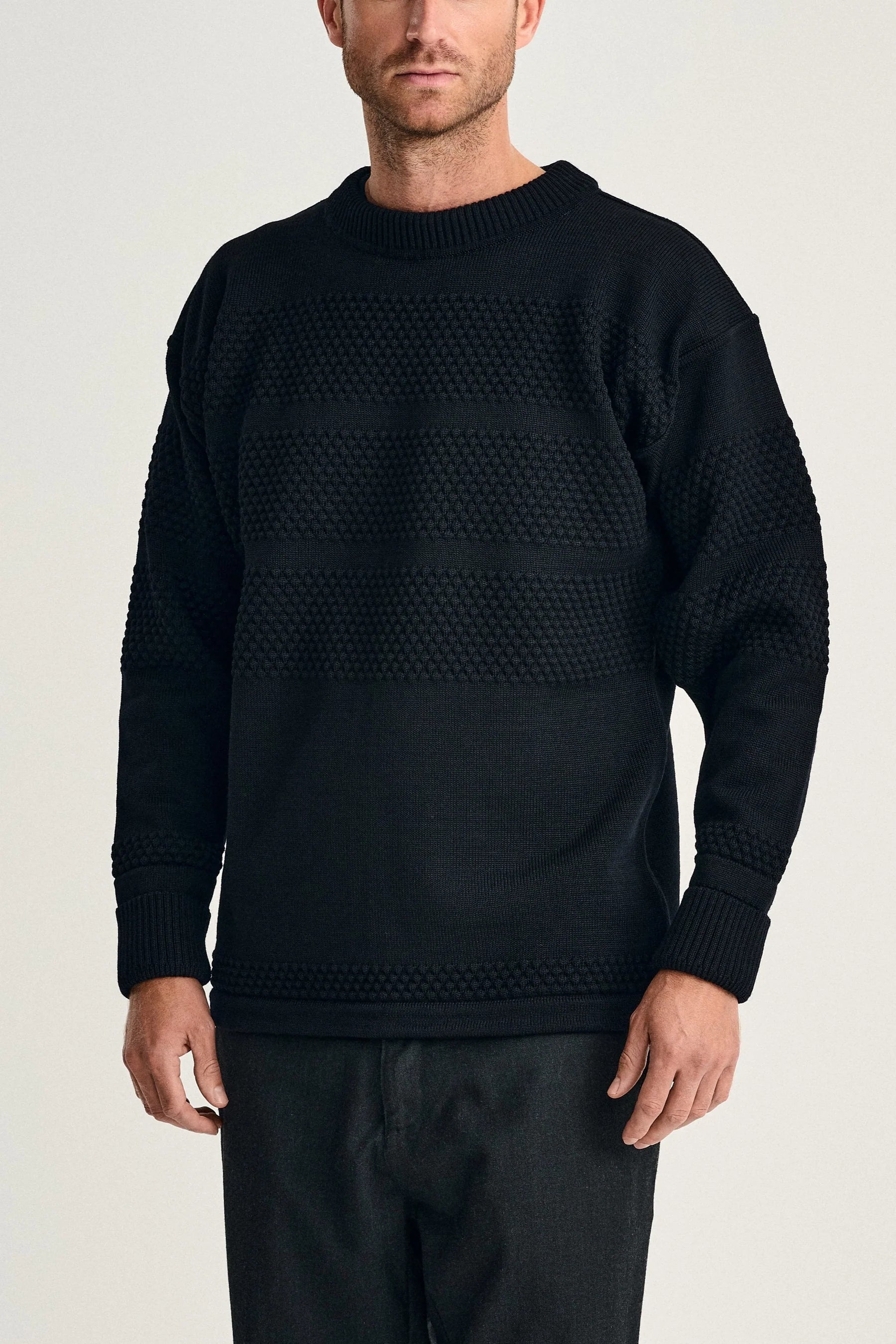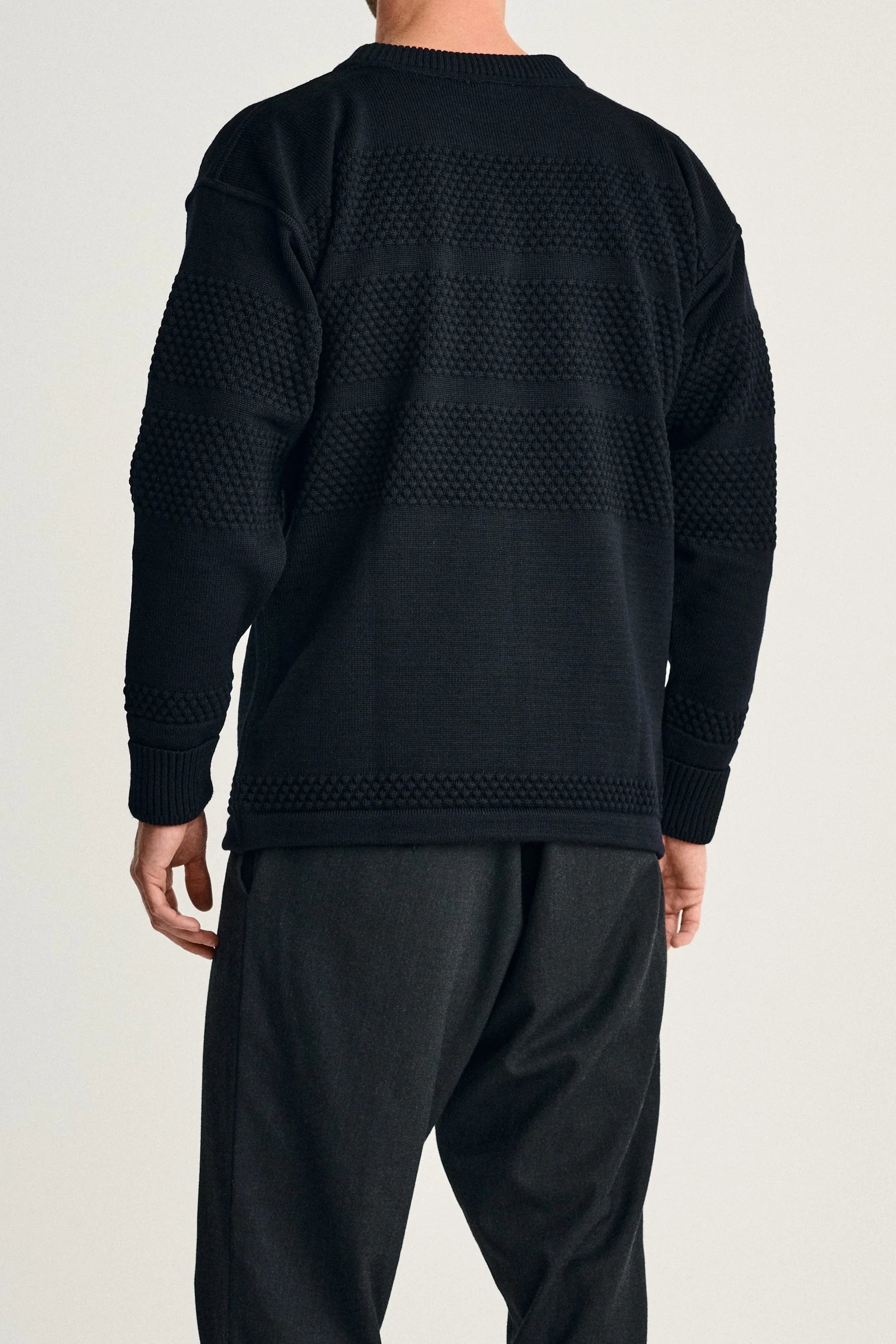 DESIGN | Original Danish Fisherman crew neck. Angled sleeves with signature bubbles on body and sleeves. Durable and timeless Danish design. |