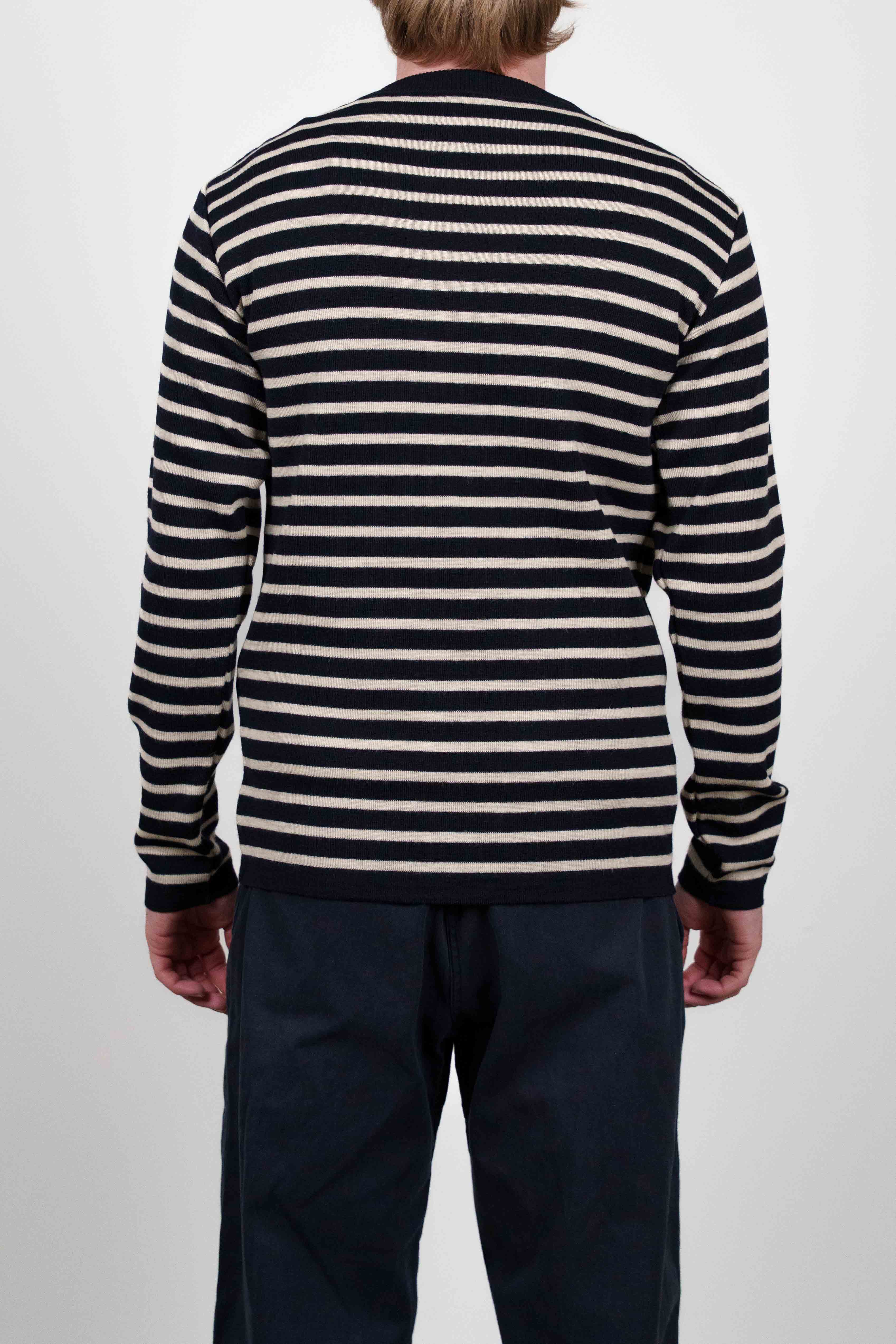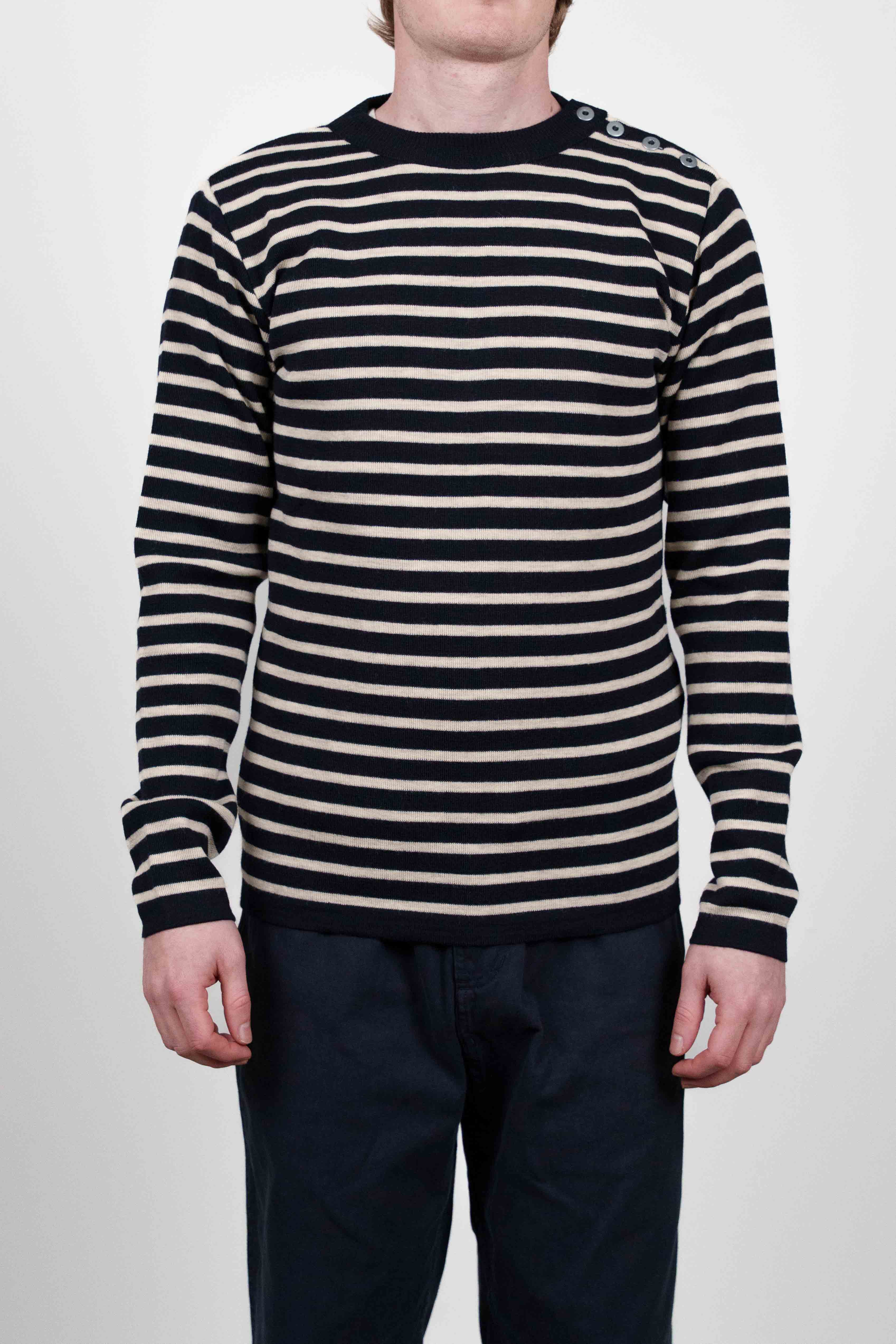 It is detailed with signature metal buttons on the left shoulder for a classic, nautical touch.