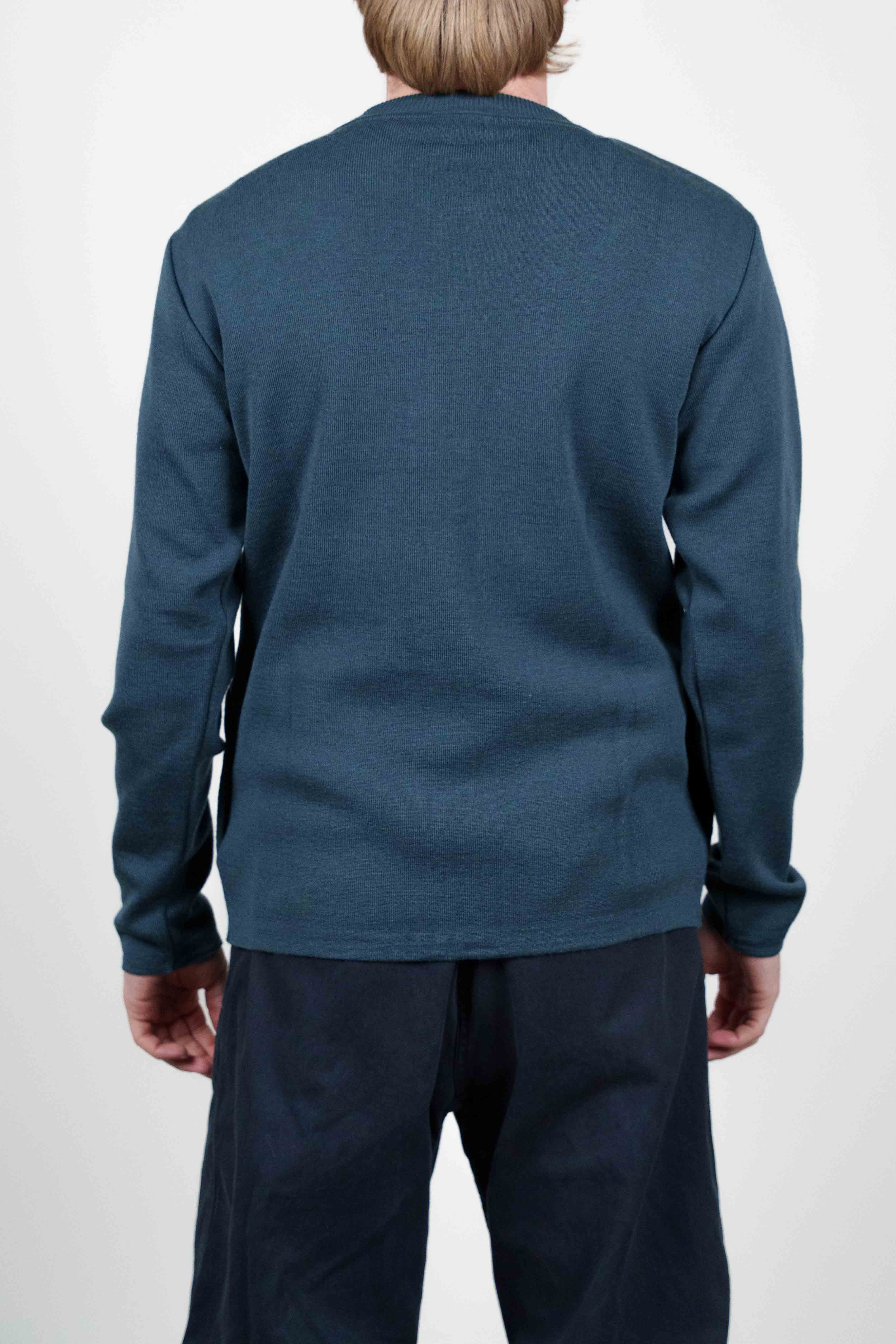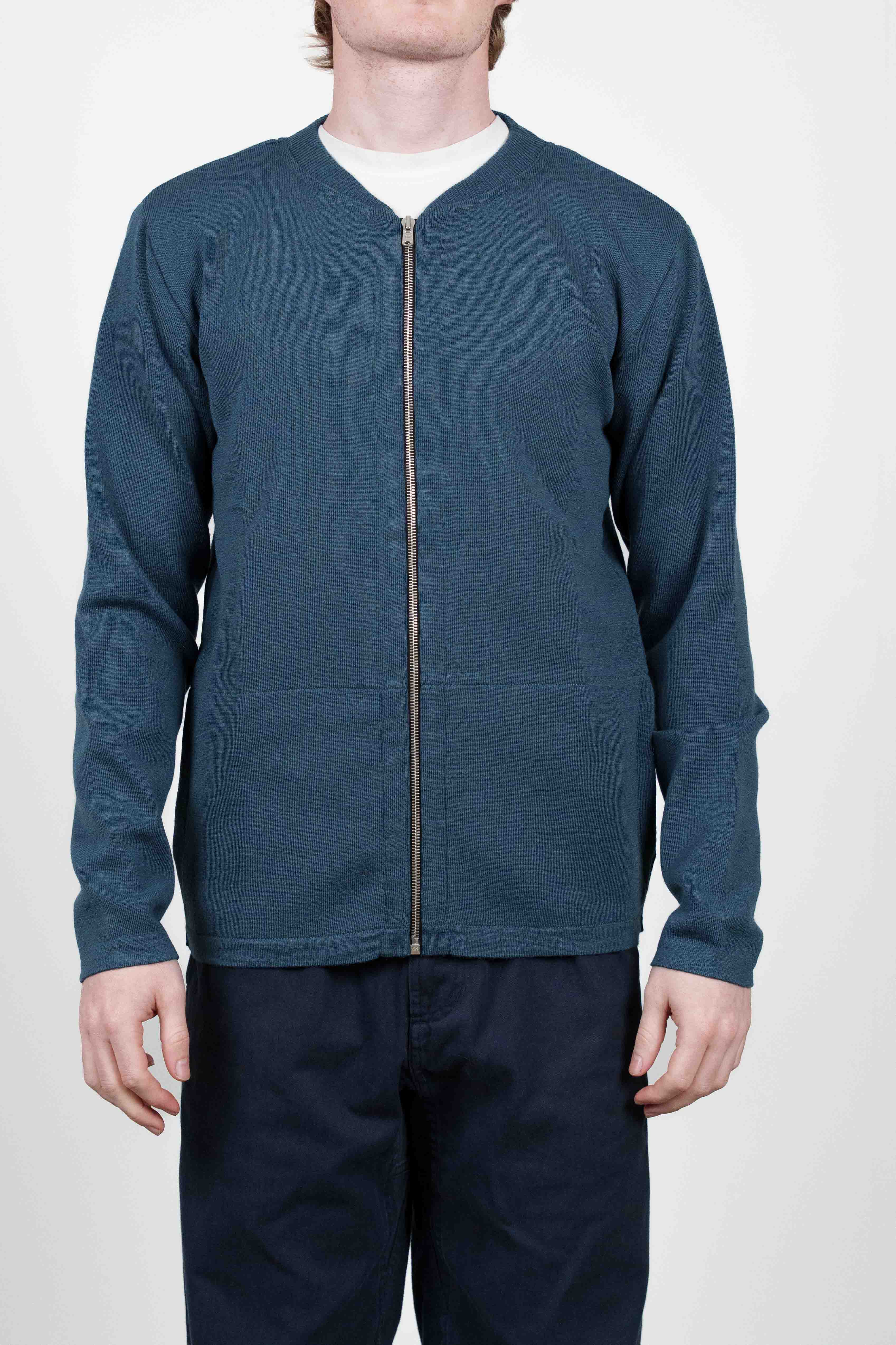 It features long sleeves and a V-neck style collar when unzipped, fastened with a metal zipper down the front.