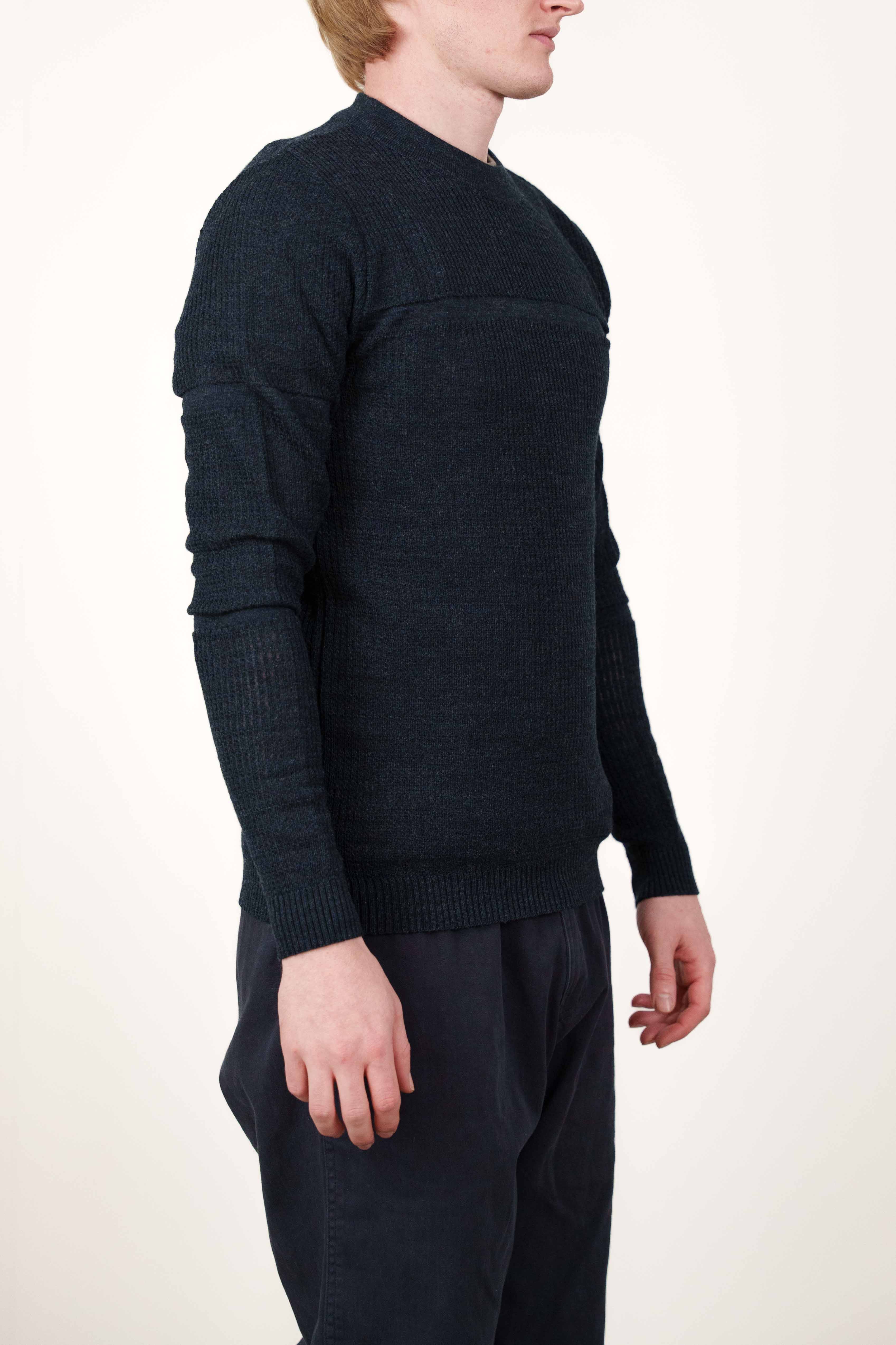 Features distinct ribbed panels on the chest, subtle vertical ribbing on the body and sleeves, with ribbed cuffs and hem.