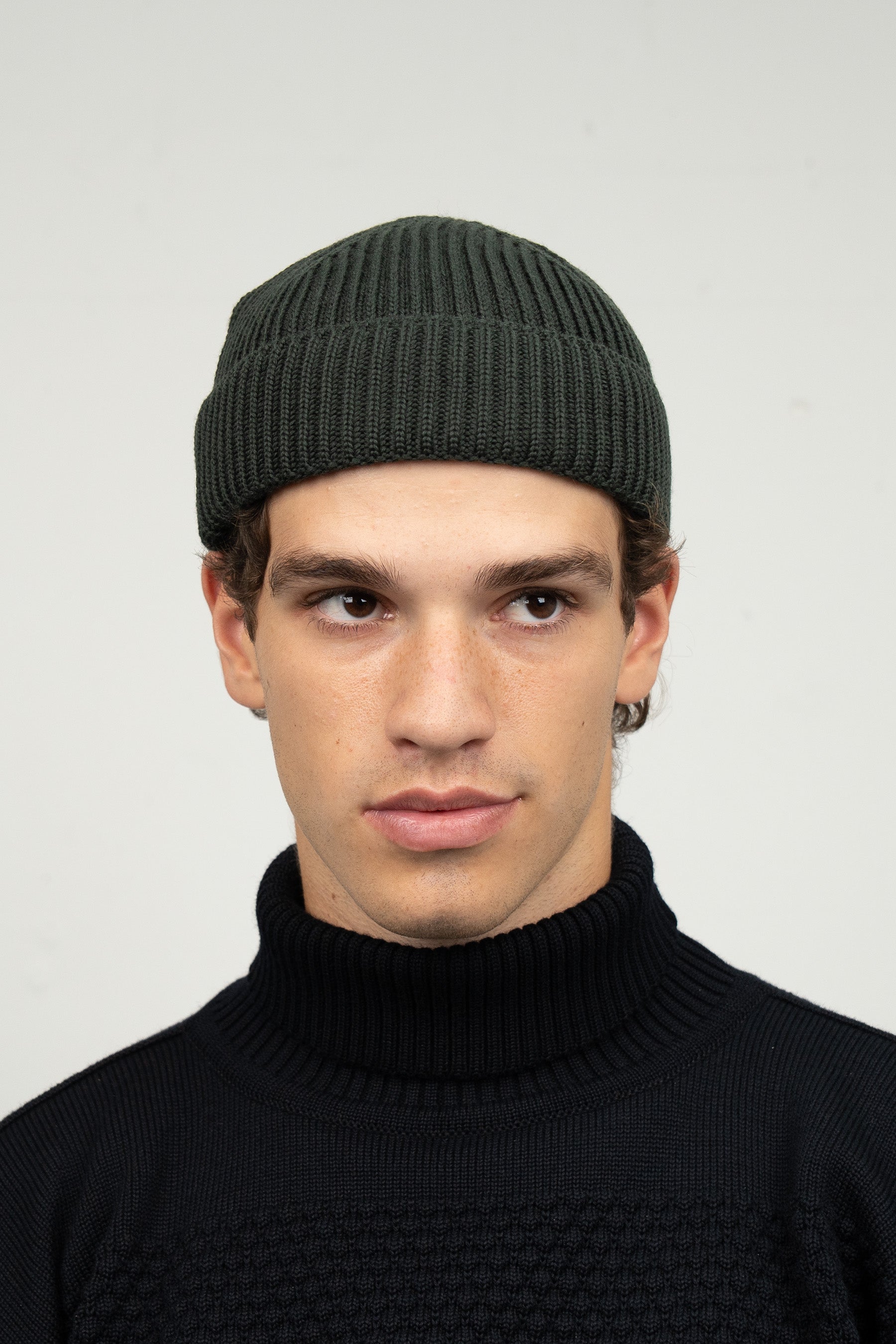 DESIGN Short beanie in tightly knitted full-cardigan stitch for shape retention. Warm, comfortable, and stylish.