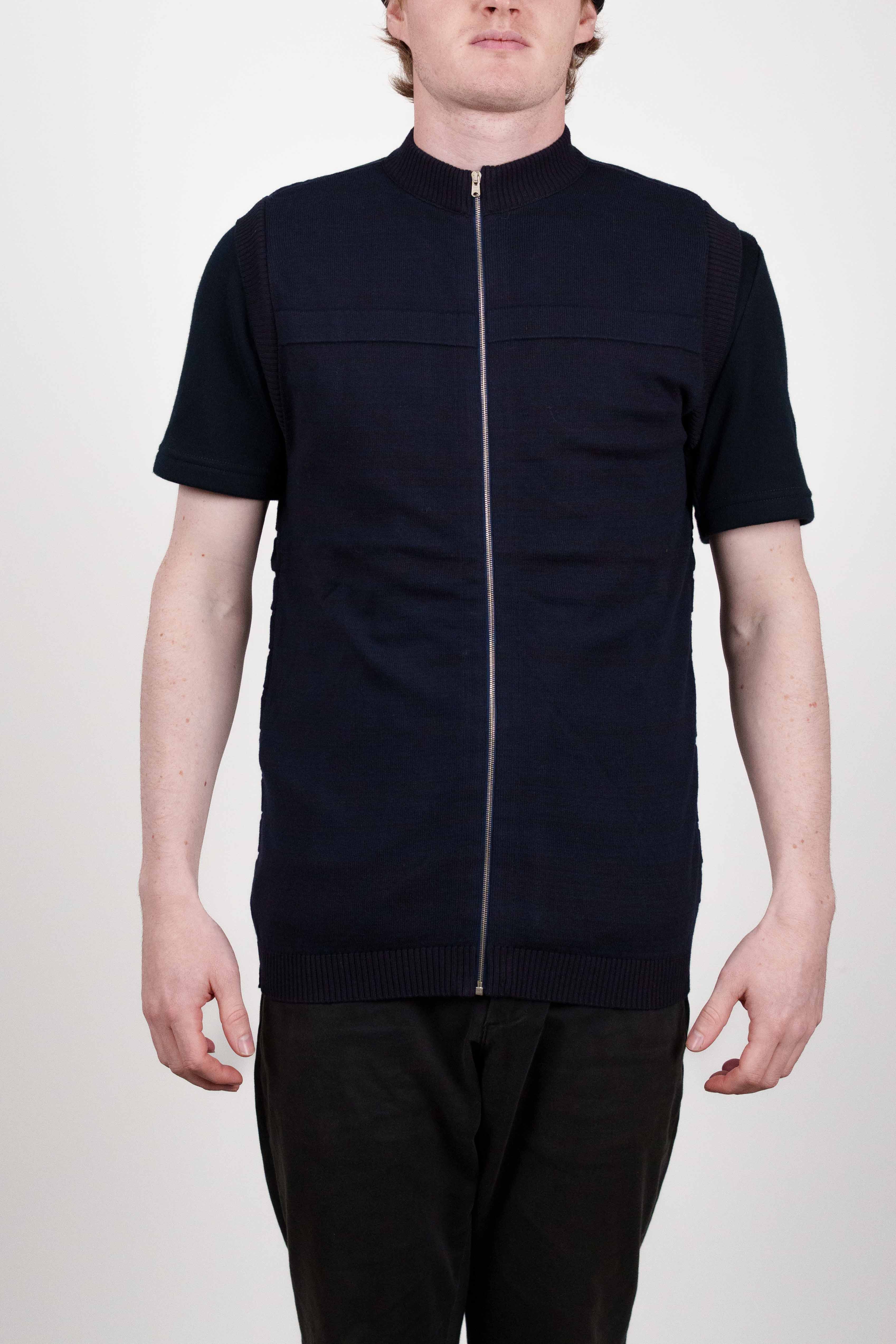 It features subtle horizontal knit patterns and a ribbed hem for a comfortable fit.