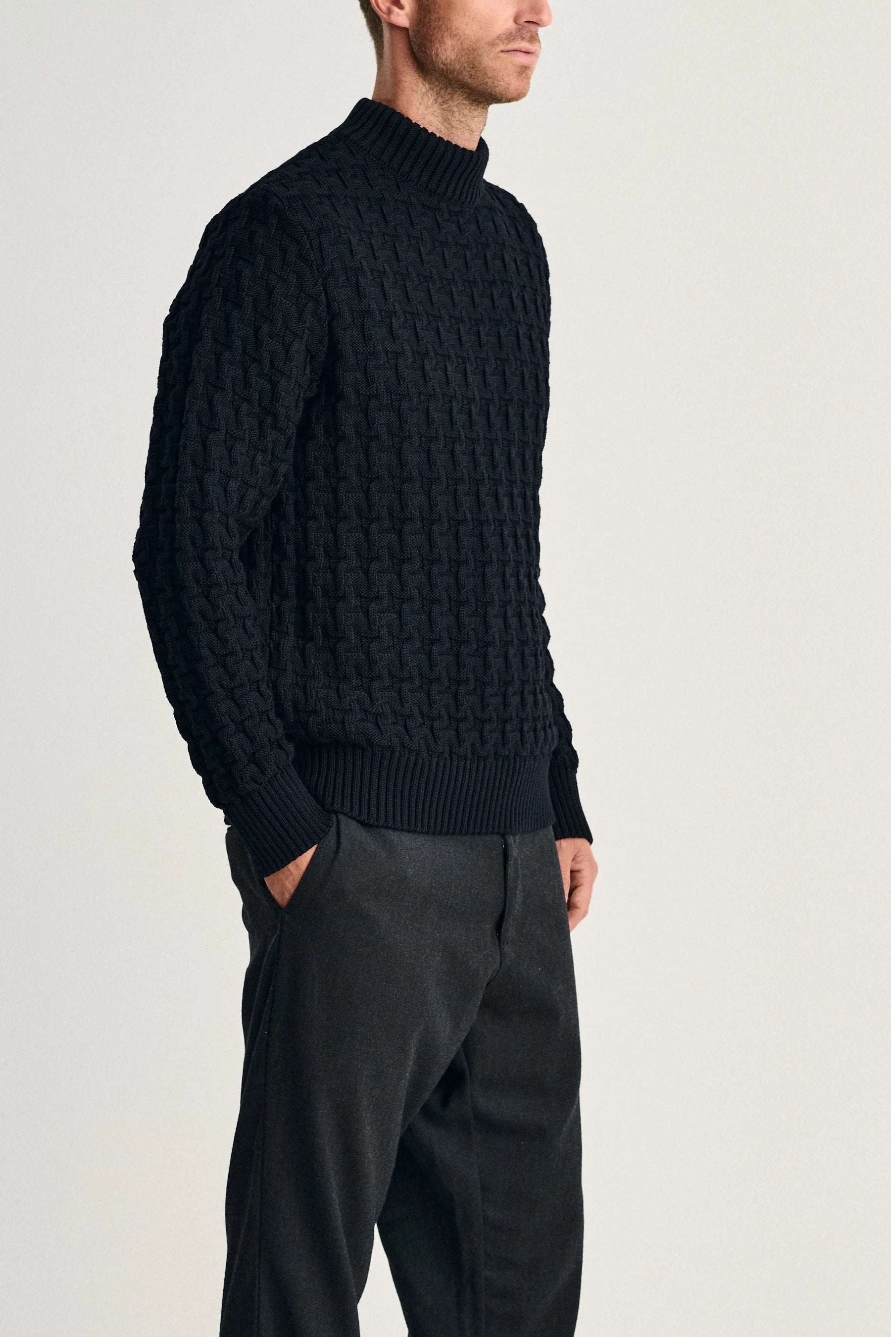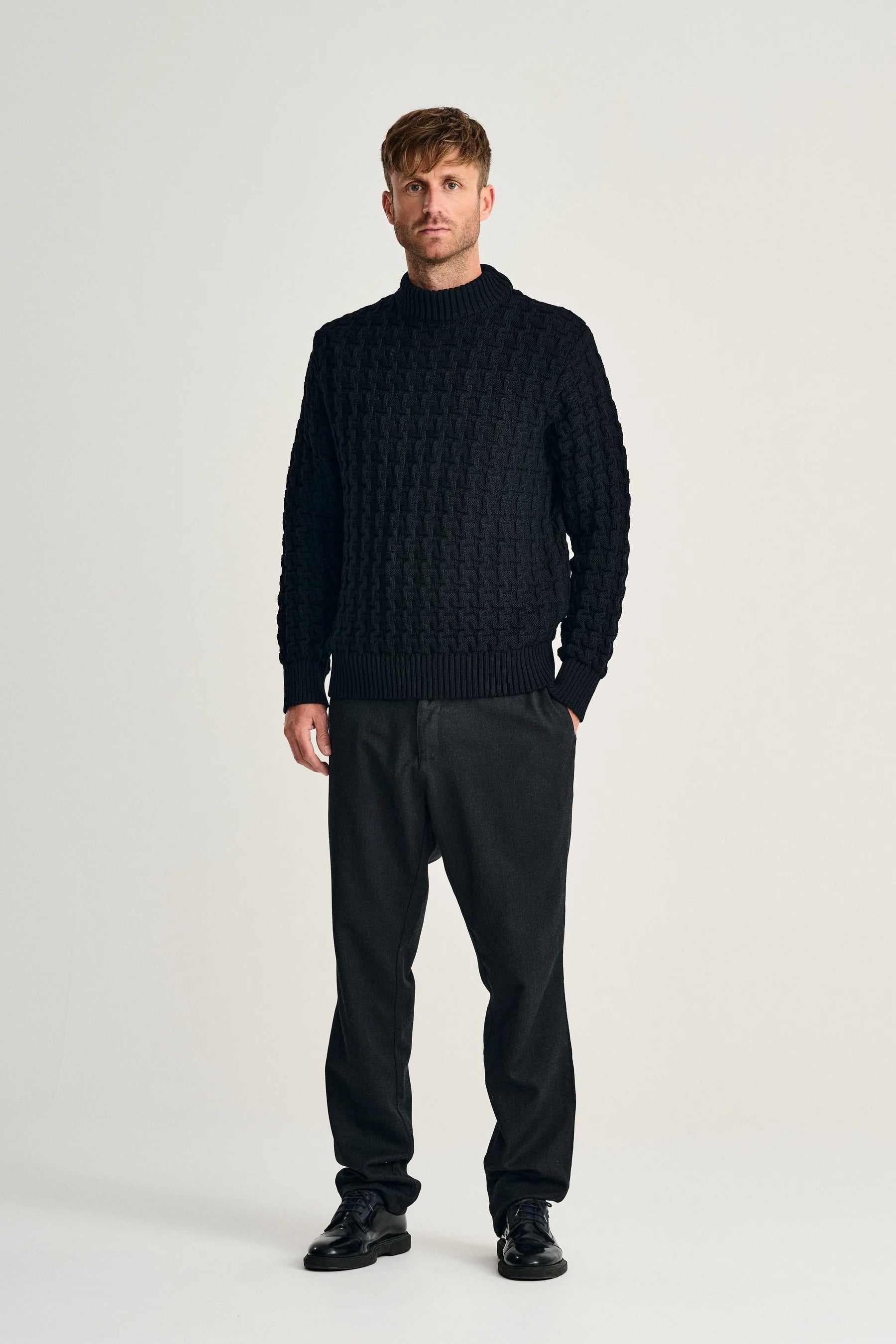 TECHNICAL DESCRIPTION | The cuffs are a single-layer 2x1 rib. The hem is a single-layer 2x1 rib, knitted in. The collar is a two-layer fixated 2x1 rib. |