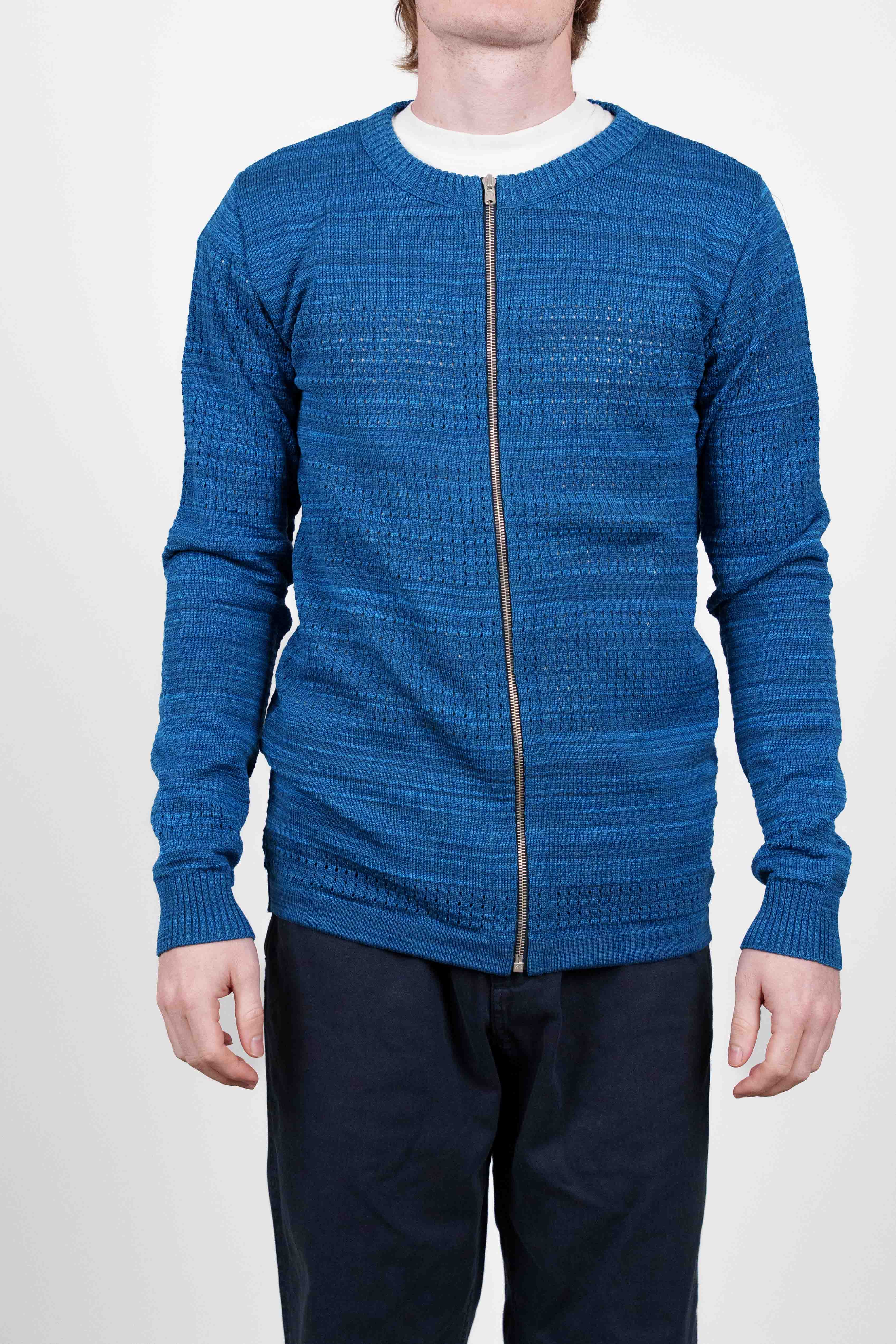This piece is finished with a classic ribbed collar, cuffs, and hem.