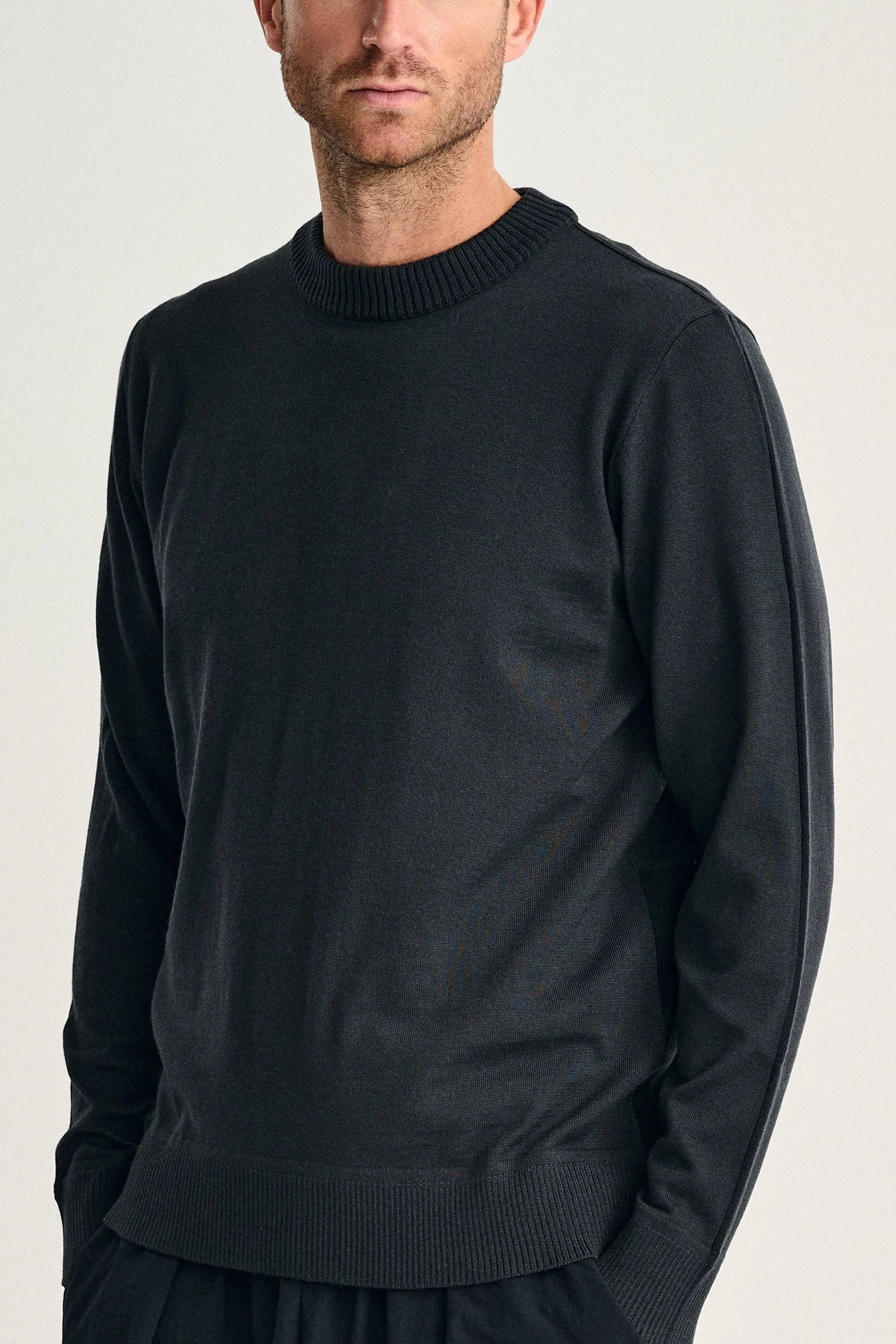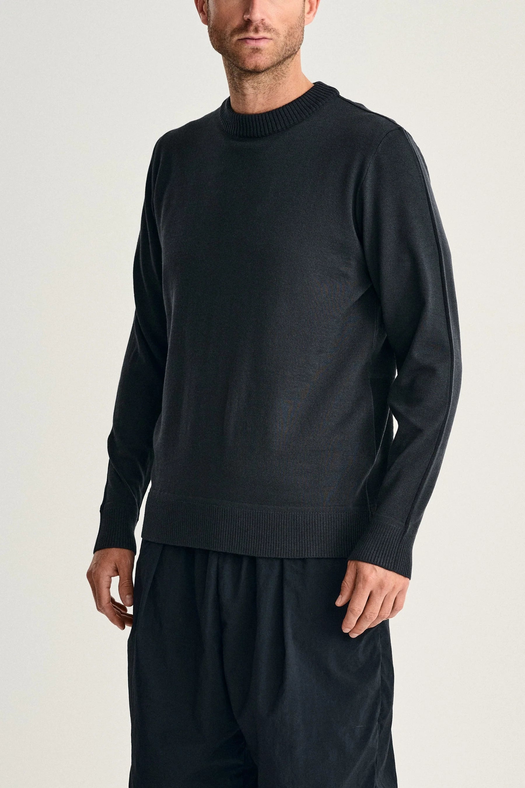 DESIGN | Solo crew neck in single-sided jersey. Subtle detailing with reverse loops on the lower back. Minimal refined design. |