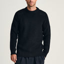DESIGN | Robust crew referencing 1970s Danish Civil Defense knits. Knitted shoulder and elbow fabric via unique technique. Heavy yet refined presence. |