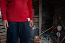 In collaboration with Norwegian photographic artist Ole Brodersen, we have created a series in which old sails are sewn onto our signature red Fisherman sweater. The sailcloth lives on through the body and, over time, will fray and transform in character. Ten unique sweaters have been produced.
